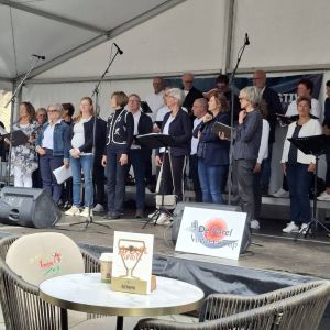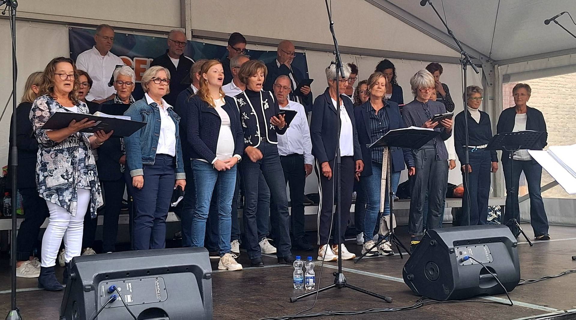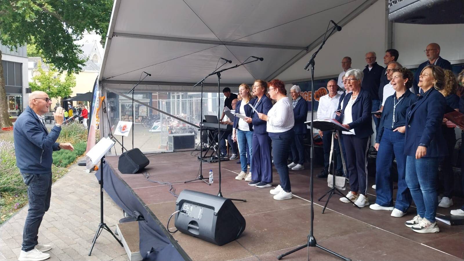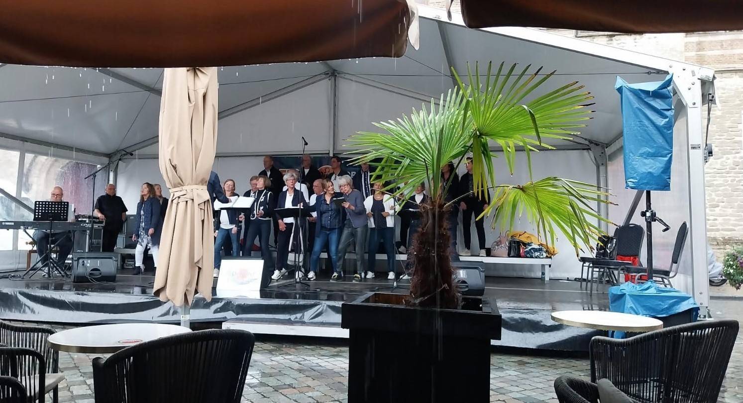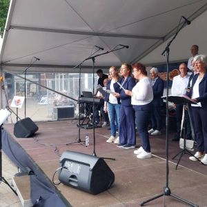 Op zaterdag 13 september 2025 hebben we deelgenomen aan het Korenfestival ‘EigenWijs’ in Bergen op Zoom. Op 11 locaties traden 40 koren op. Het festival vond plaats tijdens de Open Monumentendag 2025. De dag begon prima, met een zonnetje en een briesje hadden we ons eerste optreden op het Gouvernementsplein. Mooie plek met een goed gevuld plein en naastgelegen terras.