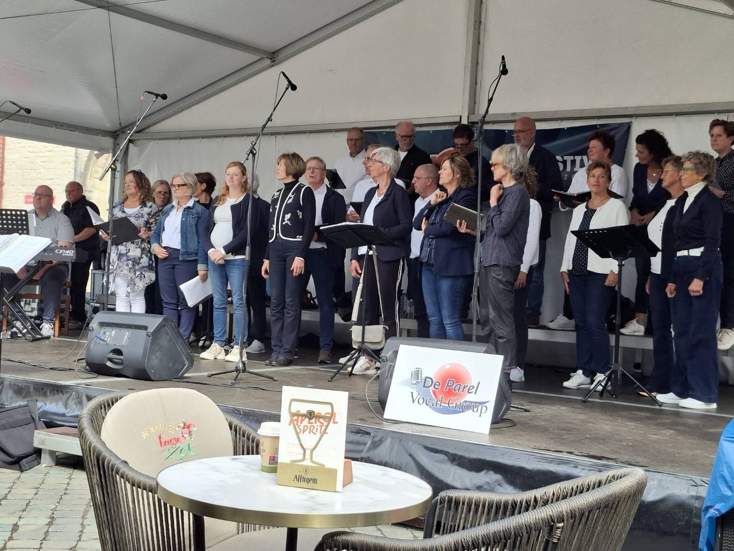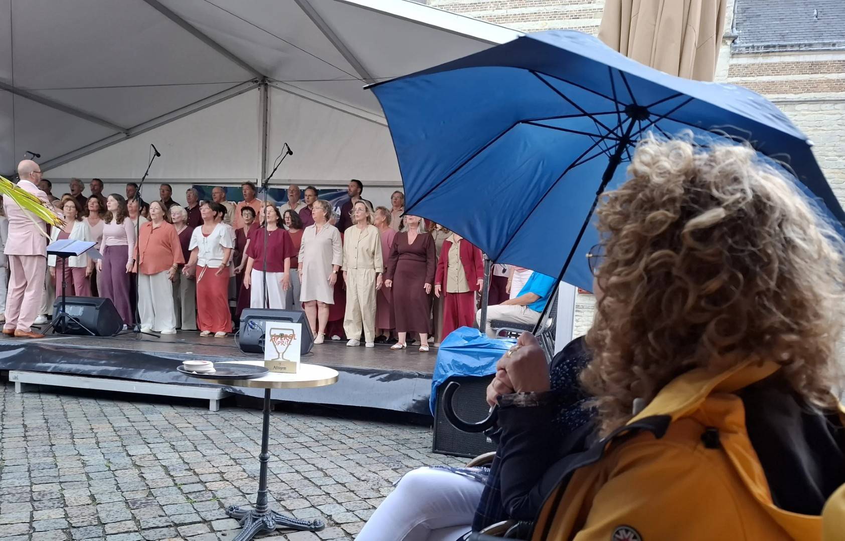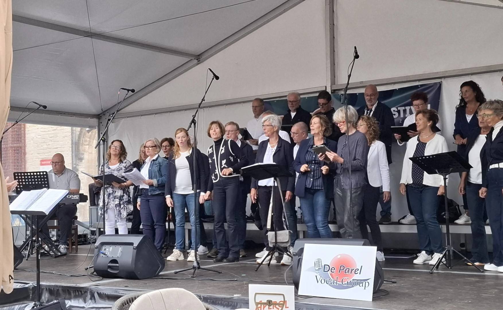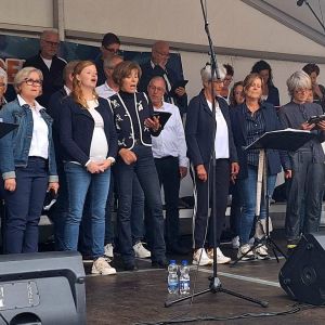 Op zaterdag 13 september 2025 hebben we deelgenomen aan het Korenfestival ‘EigenWijs’ in Bergen op Zoom. Op 11 locaties traden 40 koren op. Het festival vond plaats tijdens de Open Monumentendag 2025. De dag begon prima, met een zonnetje en een briesje hadden we ons eerste optreden op het Gouvernementsplein. Mooie plek met een goed gevuld plein en naastgelegen terras.