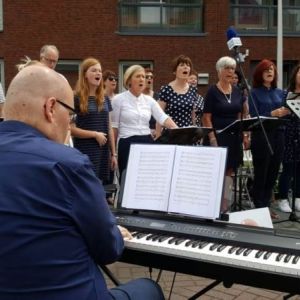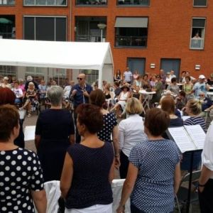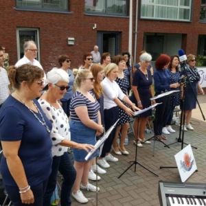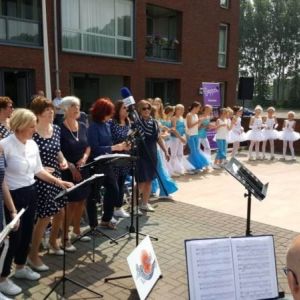 Weer een bijzondere uitnodiging. Dé dansschool uit Steenbergen wilde graag voor haar publiek in de buitenlucht laten zien wat ze met de verschillende groepen al geleerd had. Voor de muzikale omlijsting mochten wij optreden. Een mooie afwisseling van beeld en geluid. Van prachtige dans en harmonieuze samenzang. Voor allemaal een geweldige bewondering en waardering van het volop aanwezige publiek. En dat alles onder een stralende zon.